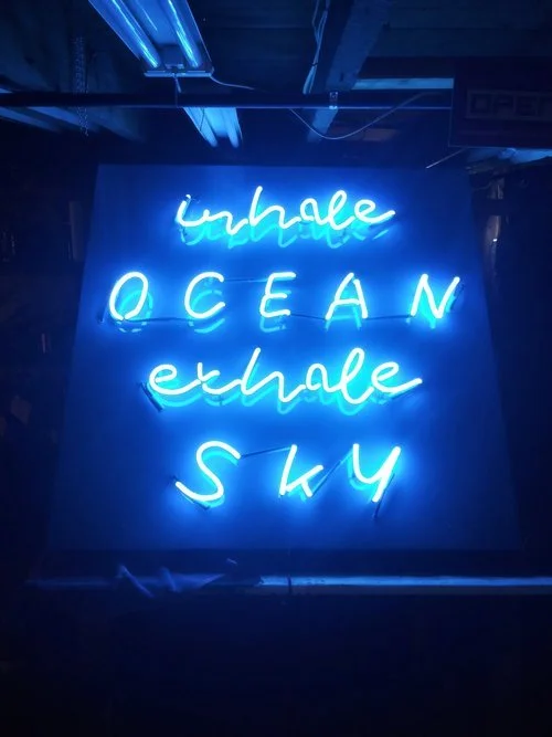 For Cig’s 2019 solo show at the Ogunquit Museum of American Art, the artist commissioned Ashley for a series of hand lettered designs for display in both neon and letterpress alongside the artist’s large format photographs.